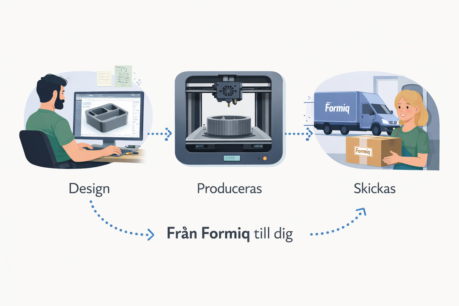 Med bakgrund inom design, teknik och entreprenörskap växte idén fram i takt med att 3D-utskrift utvecklades till ett kraftfullt verktyg för småskalig, lokal produktion. Istället för massproduktion och långa transporter valde vi en annan väg: produktion på beställning, i Sverige, med full kontroll över material, kvalitet och uttryck.