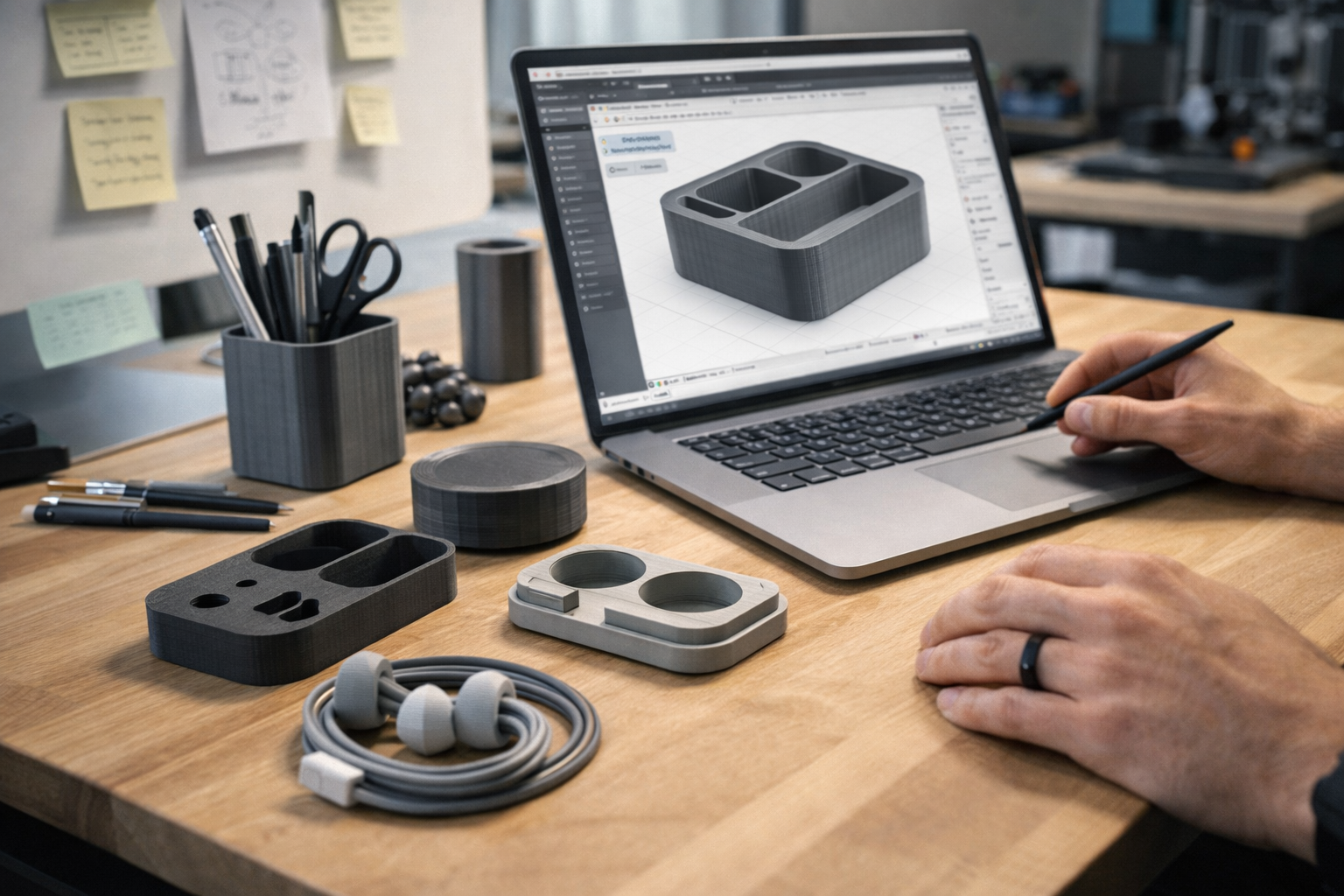 Med hjälp av avancerad 3D-utskrift kan vi skapa produkter med hög precision och låg materialåtgång. Tekniken gör det möjligt att snabbt testa, förbättra och vidareutveckla varje design – samtidigt som vi undviker överproduktion.