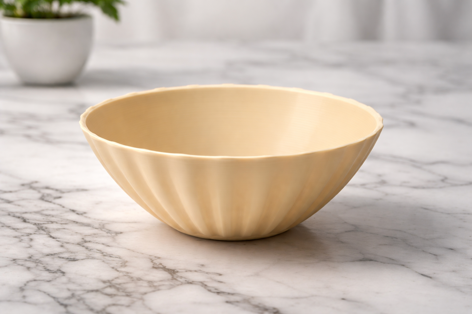Denna vackra skål är Formiqs helt egna och originella design, framtagen med fokus på både estetik och funktion. De mjuka, räfflade linjerna ger ett elegant uttryck som passar lika bra som inredningsdetalj som för praktisk förvaring i hemmet.
