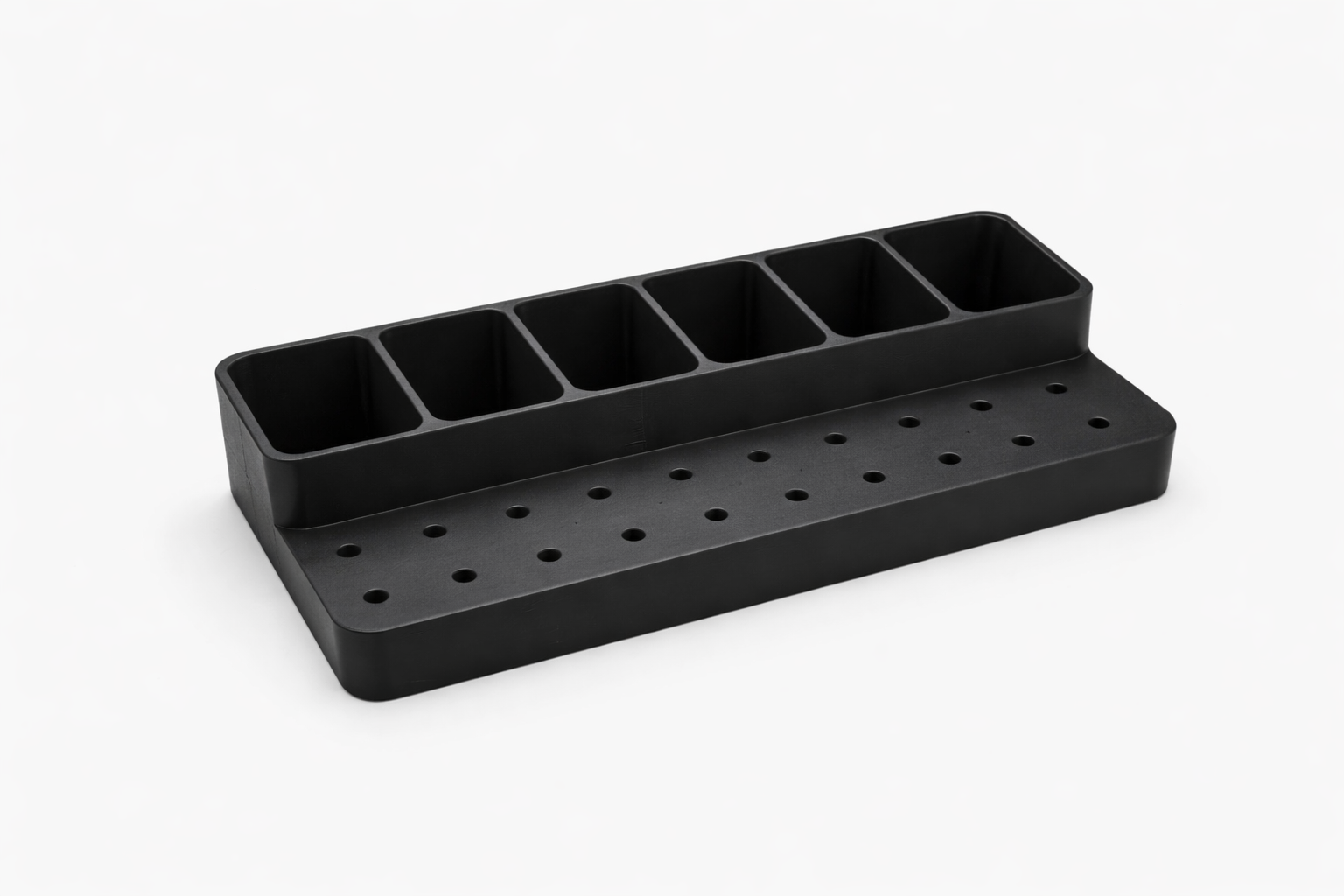 En stilren och genomtänkt kabel- och laddarorganisatör som skapar ordning där det annars lätt blir kaos. Perfekt för skrivbordet, hallen eller arbetsplatsen där flera laddare och sladdar behöver vara lättillgängliga men snyggt organiserade.