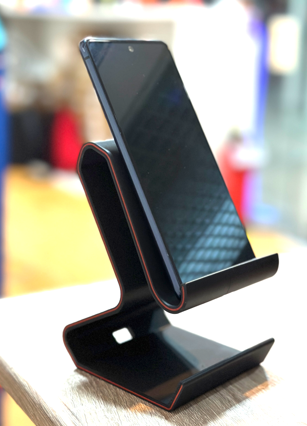 Ge din mobil en fast plats på skrivbordet, nattduksbordet eller i köket. Denna stilrena mobilhållare kombinerar modern design med praktisk funktion och gör det enkelt att ha mobilen i perfekt vinkel för videosamtal, film, recept eller notiser.