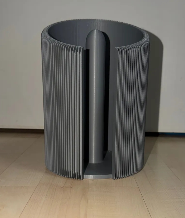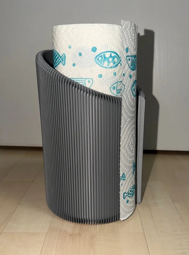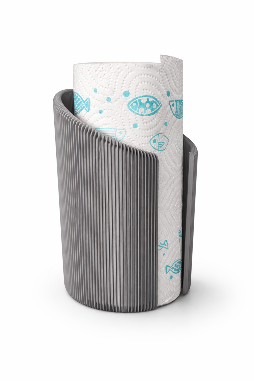 Ge köket ett lyft med denna stilrena hushållspappershållare i modern, räfflad design. Den eleganta formen ramar in rullen och håller den stadigt på plats, samtidigt som den blir en dekorativ detalj på köksbänken.